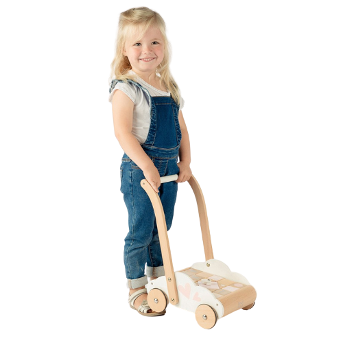 | • Antemergator realizat din lemn certificat FSC 100% si are un design deosebit, fiind decorat cu nuante subtile de alb si roz, imbinate cu culoarea lemnului • Materialele folosite pentru realizarea lui sunt calitative si non-toxice, sigure pentru copii • Baza din lemn, in forma de norisor, a acestei jucarii educative este robusta, iar rotile au insertii de cauciuc, oferind stabilitate si siguranta pe orice suprafata • In carucior se afla 20 de blocuri din lemn imprimate cu cifre, litere, semne aritmetice, simboluri si un bloc cu ceas • Acest premergator din lemn nu este destinat pentru a-i invata pe copii sa mearga, ci pentru a le sustine motivatia de a se misca si de a-si dezvolta abilitatile motorii • Este o jucarie educativa longeviva, sustinand invatarea abilitatilor de calcul, recunoastere a literelor si cifrelor, a limbajului, invatarea ceasului • Benefic pentru dezvoltarea motricitatii fine si grosiere • Varsta minima recomandata: 12 luni • Dimensiuni: 34 x 24 x 41.5 cm |
